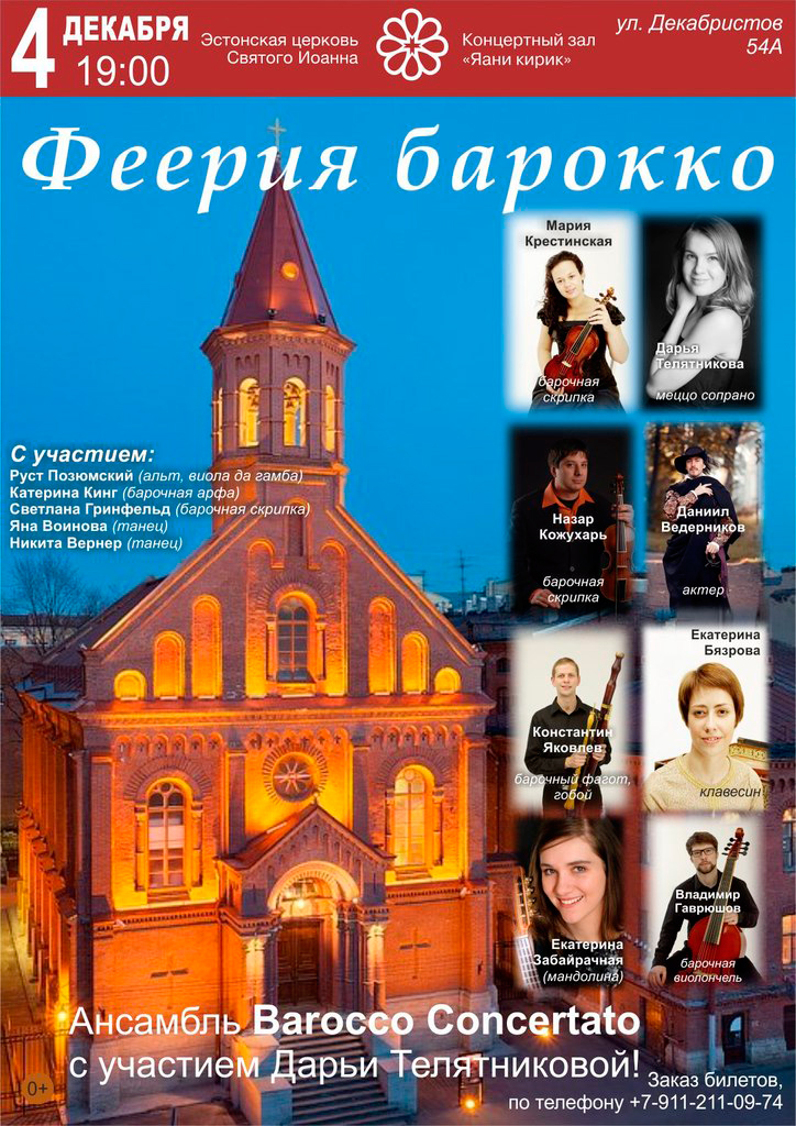 4 декабря - концерт «Феерия барокко» в КЗ «Яани Кирик»