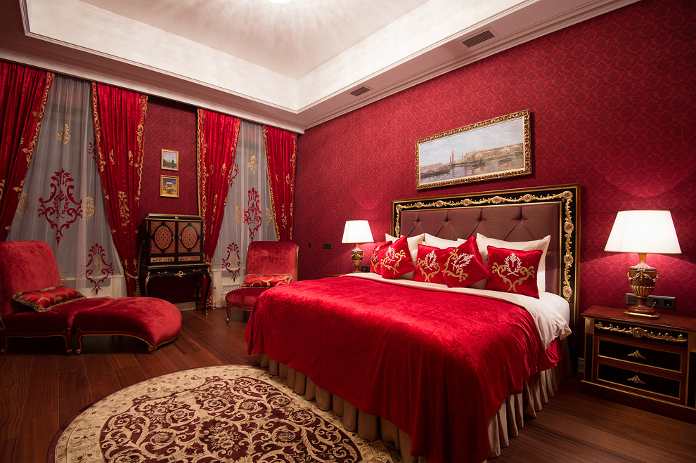 Гармония, яркость красок, контрастность форм завораживает и покоряет сердца. Элегантность этого номера не подвластна течению времени. Люкс оформлен в классических белом, красном и желтом тонах, его чистые линии мастерски отражают величие царской России. Мебель, созданная по специальному заказу, обеспечит современный комфорт и позволит окунуться в безмятежность и покой минувших столетий. Уютно устроившись с бокалом вина, насладитесь одной из главных достопримечательностей Санкт- Петербурга,- разводными мостами.