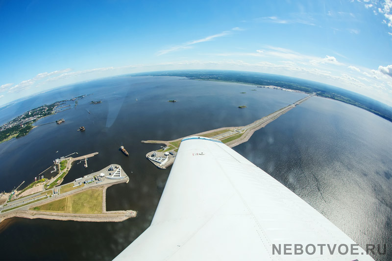Маршрут полета зависит от продолжительности, в целом, мы пролетаем над такими местами как: Кронштадт, Дамба, Форт Александра 1, Заброшенный ЗРК ПВО «Даль», Гольф клуб, Центр СПб, Водопады дер.Извара, Лахта, Сестрорецк, Копорская Крепость.